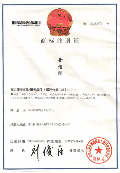 金酒河商标注册证
